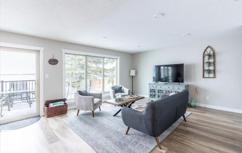 This Beautiful Western Manufacturing Show Home right along Pigeon Lake was moved into place in 2023. Composite decks on both sides allow all day sun or shade with a hot tub just steps from the water. Head inside to the main floor that hosts the Primary bedroom, Modern Kitchen, Dining Room, Living Room, and 3 piece Bathroom. The upper level is beautifully finished with a wood cladded ceiling that holds Two more Bedrooms, a 4 piece Bathroom, and a Family Room with large windows that overlook the Lake. This property is turn key and comes completely furnished. Great for guests is the fully finished bunk house that has a Bedroom, 3 piece Bathroom, Laundry, Hot Water on Demand, and kept warm year round. Just minutes from the Village of Pigeon Lake that has all your amenities. Close to Schools and Enjoyable year round with lots of winter activities, and just minutes to many different Golf Courses. Being used as a Popular AirBnB. Neighboring property is also available allowing you to set up your own Lake Resort!